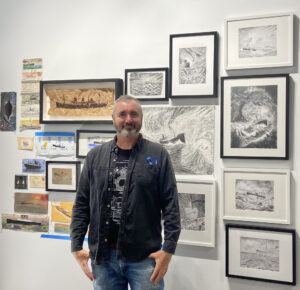 Artist Bio Born in the UK and currently residing in Los Angeles, Martin Cox is a lifelong photographer from Southampton who transitioned to drawing and painting during the pandemic. His work explores themes deeply rooted in his personal experiences and family history with seafaring. After showcasing his art in London galleries, Cox embarked on a transatlantic journey, drawing inspiration from California’s diverse landscapes and exhibiting in New York City and San Francisco. His artistic explorations took him to Iceland, where he presented a solo exhibition that blended photography and collage at the Husavik Art & Culture Museum. Cox’s current focus on charcoal drawing and painting extends his maritime themes onto unconventional surfaces, including cardboard and old documents. He also creates large-scale drawings on archival paper and engaging collages, deftly weaving personal narratives, cultural nuances, and environmental concerns into his visual repertoire.